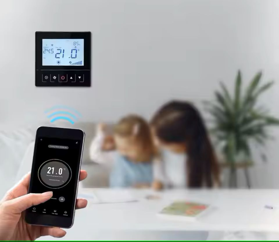 It's with smart WiFi and APP, which allows user to set the controllers anywhere remotely. It help user to make a comfortable environment and energy saving.